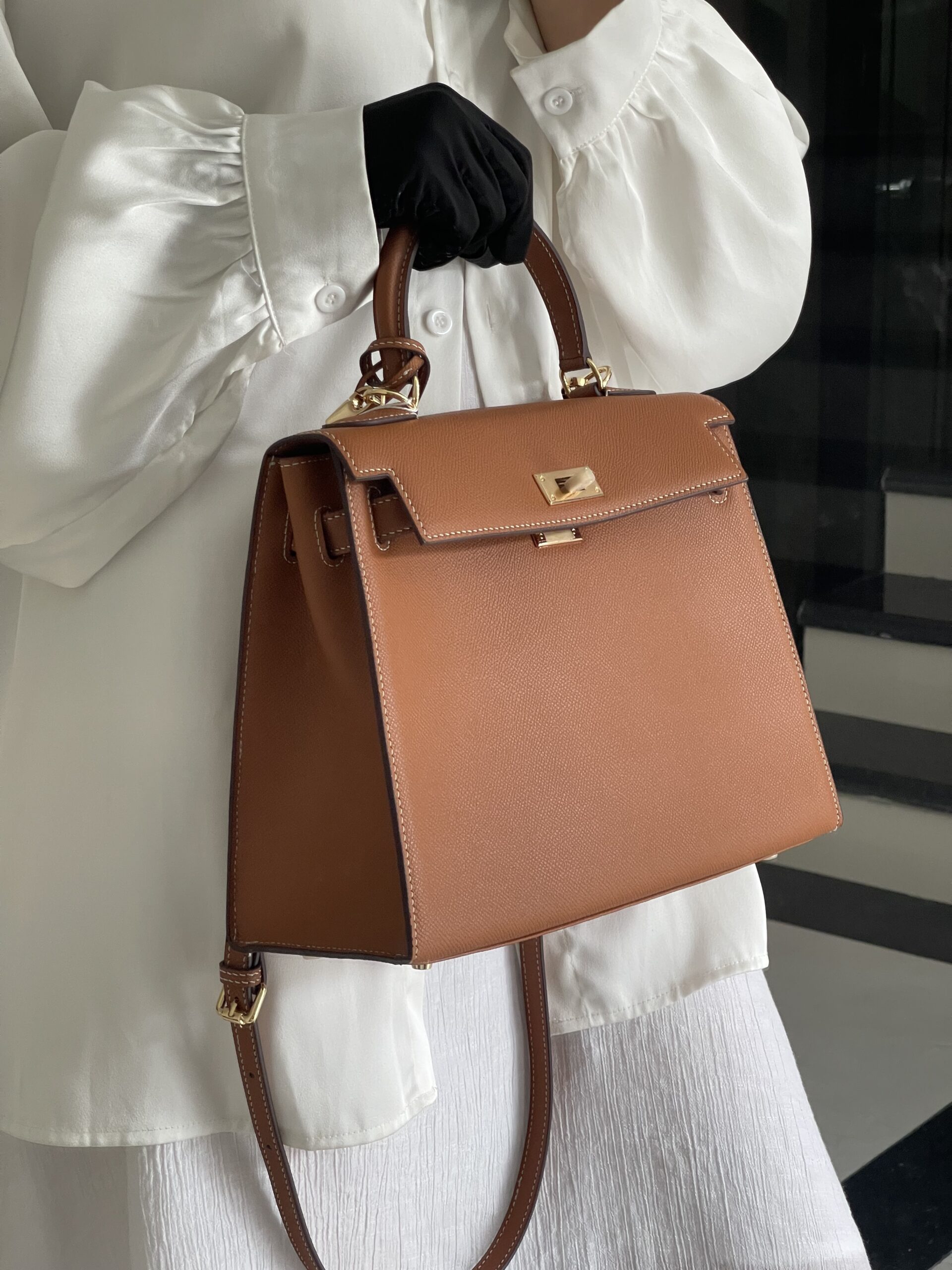 Modern Aesthetic: Epsom lends a sharp, contemporary edge to the classic Kelly design, appealing to those who favor clean lines and structure.